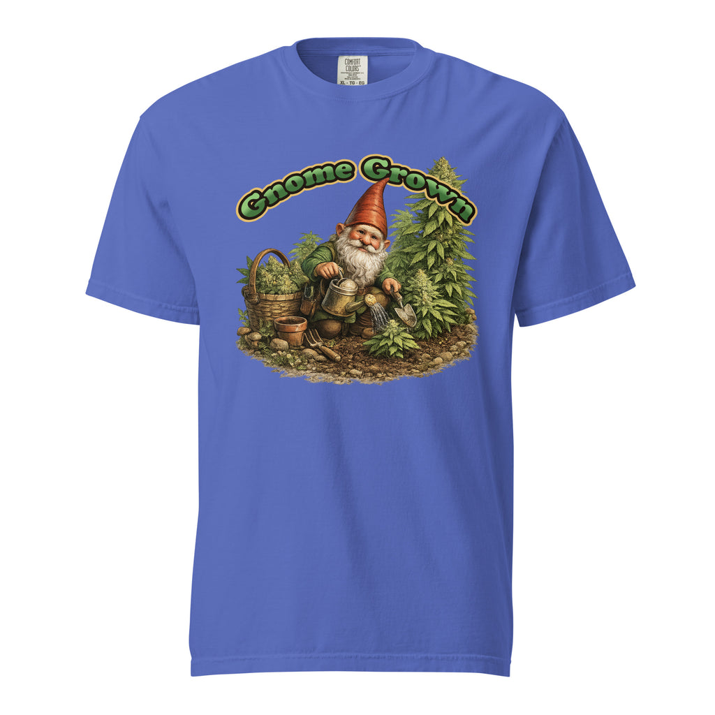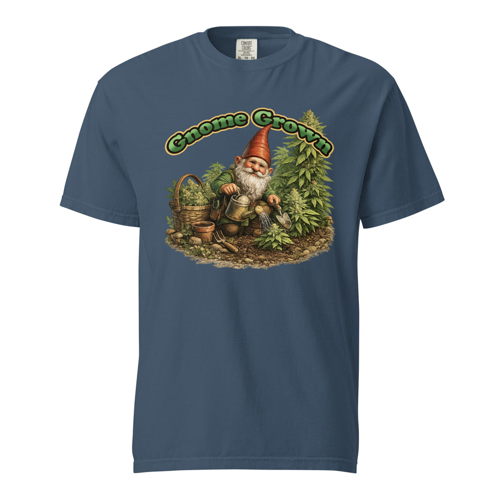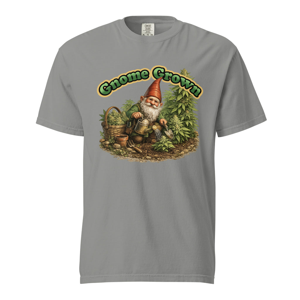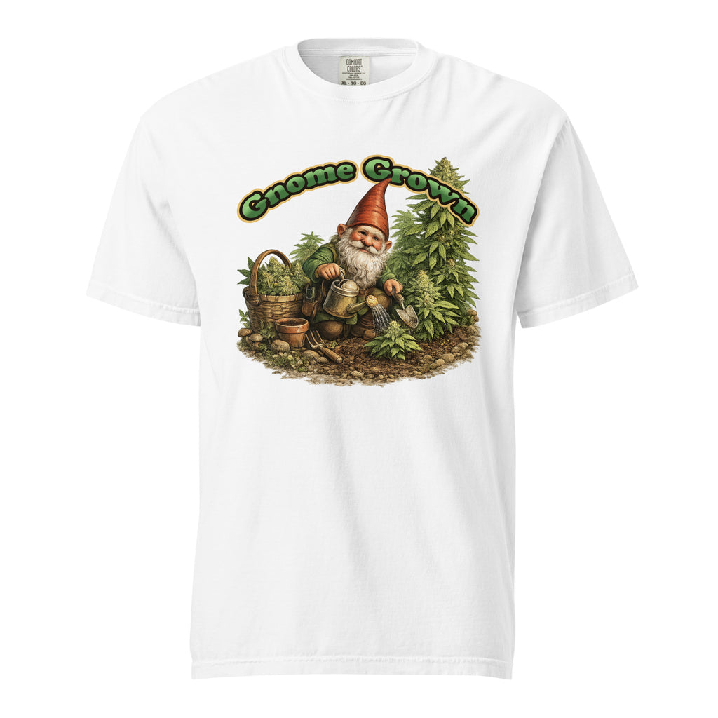 Show off your love for elevated gardening with this hilarious “Gnome Grown” cannabis t-shirt. Featuring a detailed garden gnome tending his marijuana plants like a true master grower, this design blends wholesome backyard vibes with classic 420 humor.